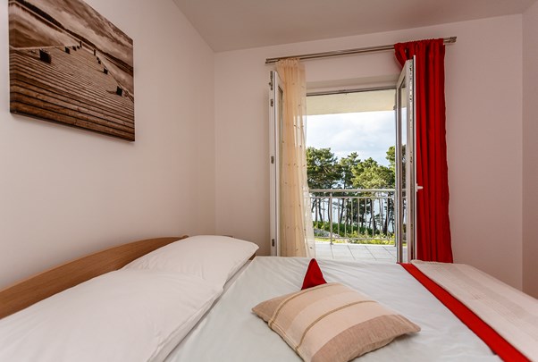 Вы будете себя чувствовать избалованнов наших просторнейших однокомнатных апартаментах с выходом на балкон, с которого открывается живописный вид на море. Представьте, что вы уже здесь. Просыпаетесь под шум волн и запах моря, плаваете в кристально чистом море и нежетесь на солнышке в окружении сосен как только захотите, так как частный пляж находится всего в 30 метрах от ваших апартаментов. Чтобы гарантировать вам прекрасное начало отдыха мы будем ожидать вас как дорогого друга с бутылкой лучшего хорватского вина. *