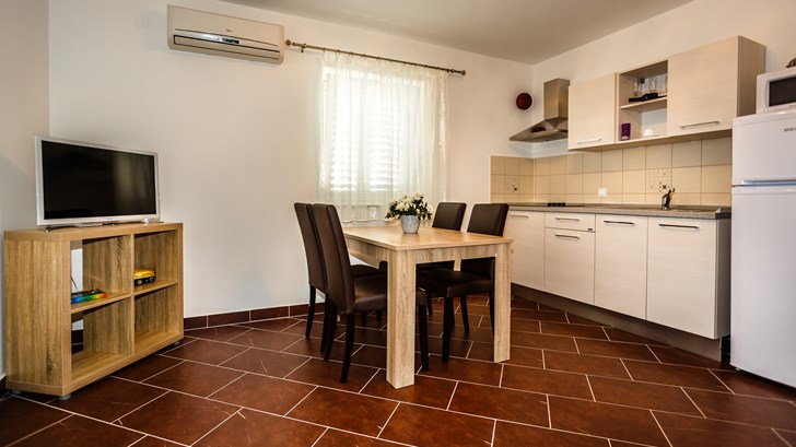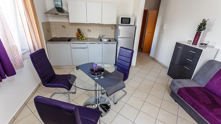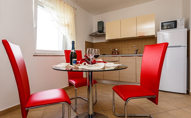 In dieser geräumigen Einzimmerferienwohnung mit zwei Balkons und einem atemberaubenden Meerblick werden Sie vom Rauschen der Wellen und dem Zwitschern der Vögel geweckt. Mochten Sie sich noch vor dem Frühstück im Meer erfrischen oder bevorzugen Sie lieber Nachtbaden? Der wunderschöne hoteleigene Strand ist mit einem duftenden Kiefernwald umgeben und ist nur 30 Meter von Ihrem Ferienhaus entfernt. Um Ihnen einen schönen Beginn des Urlaubs zu gewährleisten, werden wir Sie wie einen guten Freund mit einer Flasche kroatischen Qualitätsweins empfangen.*