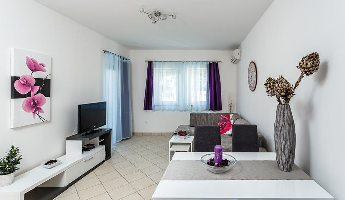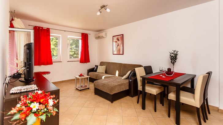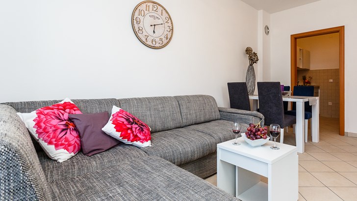 Vi sentirete coccolati nel nostro appartamento con una camera da letto, balcone e vista sul mare più spazioso. Pensate di esserci già arrivati. Di svegliarvi con il suono delle onde e il profumo di mare, di nuotare nel mare azzurro cristallino e idi poter farvi accarezzare dal sole, circondati da pini perché la spiaggia si trova a soli 30 metri dal vostro appartamento. Al fine di rendere ancora più bello l'inizio della vostra vacanza, vi accoglieremo come un caro amico – con una bottiglia di vino croato di altissima qualità.*