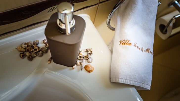 Vi sveglierete nel nostro appartamento con due camere da letto con il suono delle onde e una spettacolare vista sul mare aperto. Vi tufferete nel mare azzurro dalla spiaggia privata e vi farete coccolare dal sole, immersi nei dolci profumi della natura. In cucina troverete tutto ciò che vi serve per la preparazione di piatti squisiti, e, in caso vi mancasse qualche spezia, potete tranquillamente servirvi del nostro giardino di erbe aromatiche. Al fine di regalarvi un inizio della vostra vacanza ancora più bello, vi accoglieremo come un caro amico – con una bottiglia di vino croato di altissima qualità*