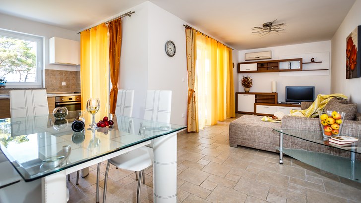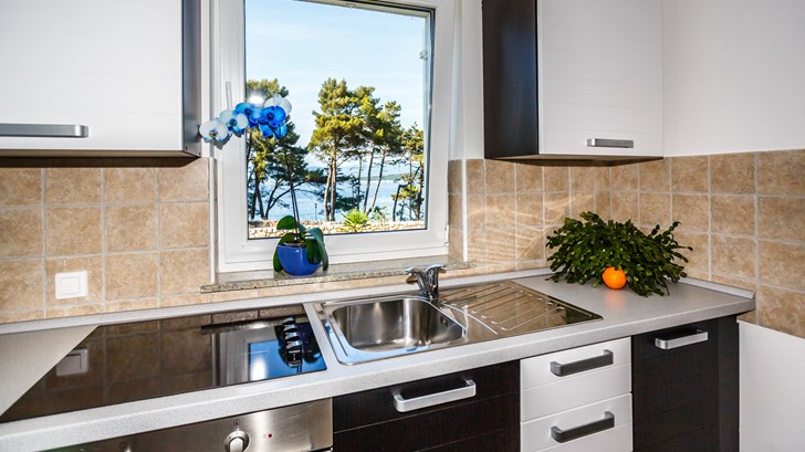 Se cercate il meglio, la nostra suite con spettacolare vista al mare è la scelta che fa per voi! L'appartamento comprende il balcone più ampio con accesso diretto al giardino mediterraneo (200 mq) in cui potete rilassarvi in silenzio o organizzare lunghe serate in compagnia. La spiaggia privata situata a soli 30 m dall'appartamento è ideale per le ore di riposo con il libro preferito, e i tuffi nel mare cristallino. Al fine di rendere ancora più bello l'inizio della vostra vacanza, vi accoglieremo come un caro amico – con una bottiglia di vino croato di altissima qualità.*
